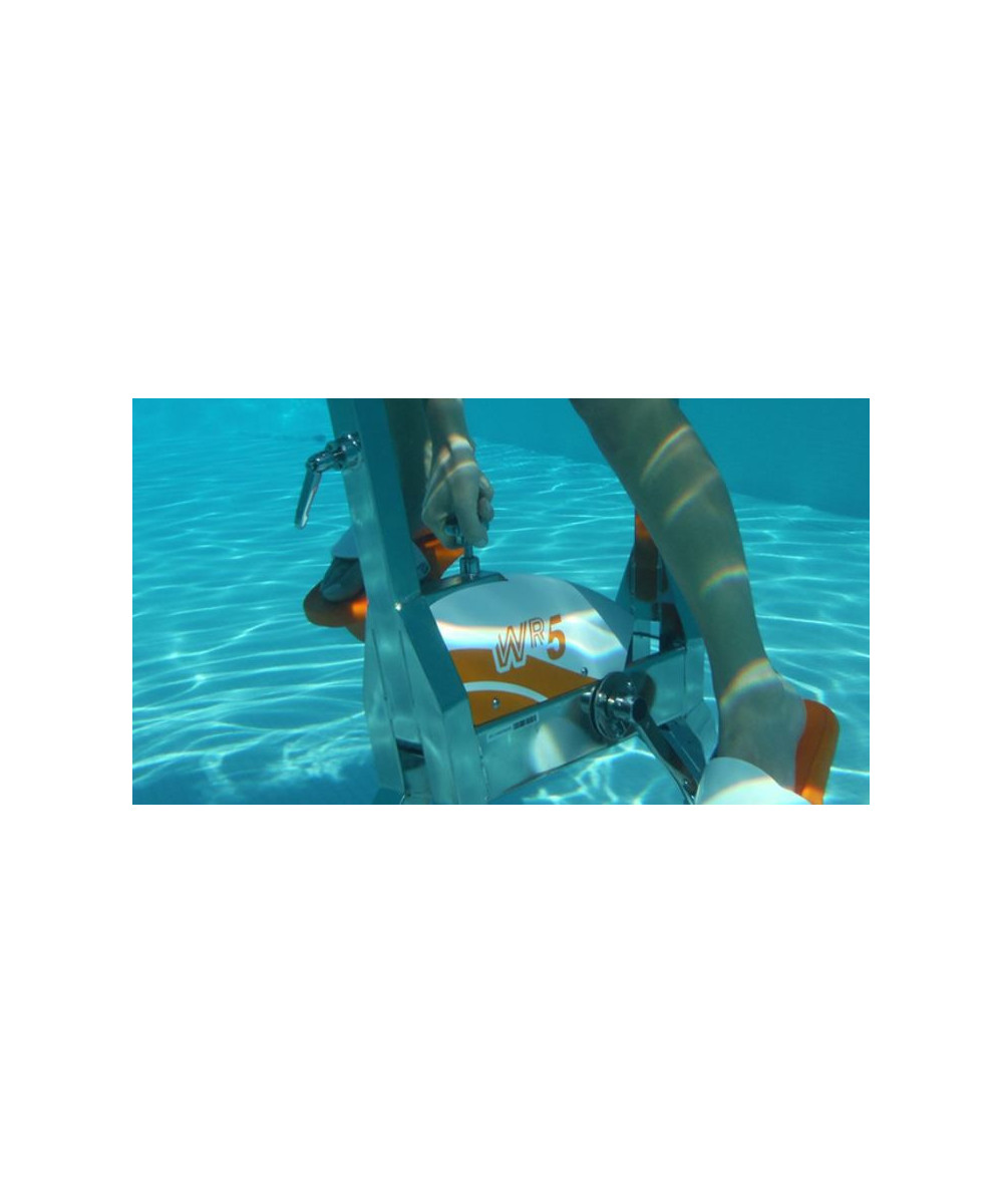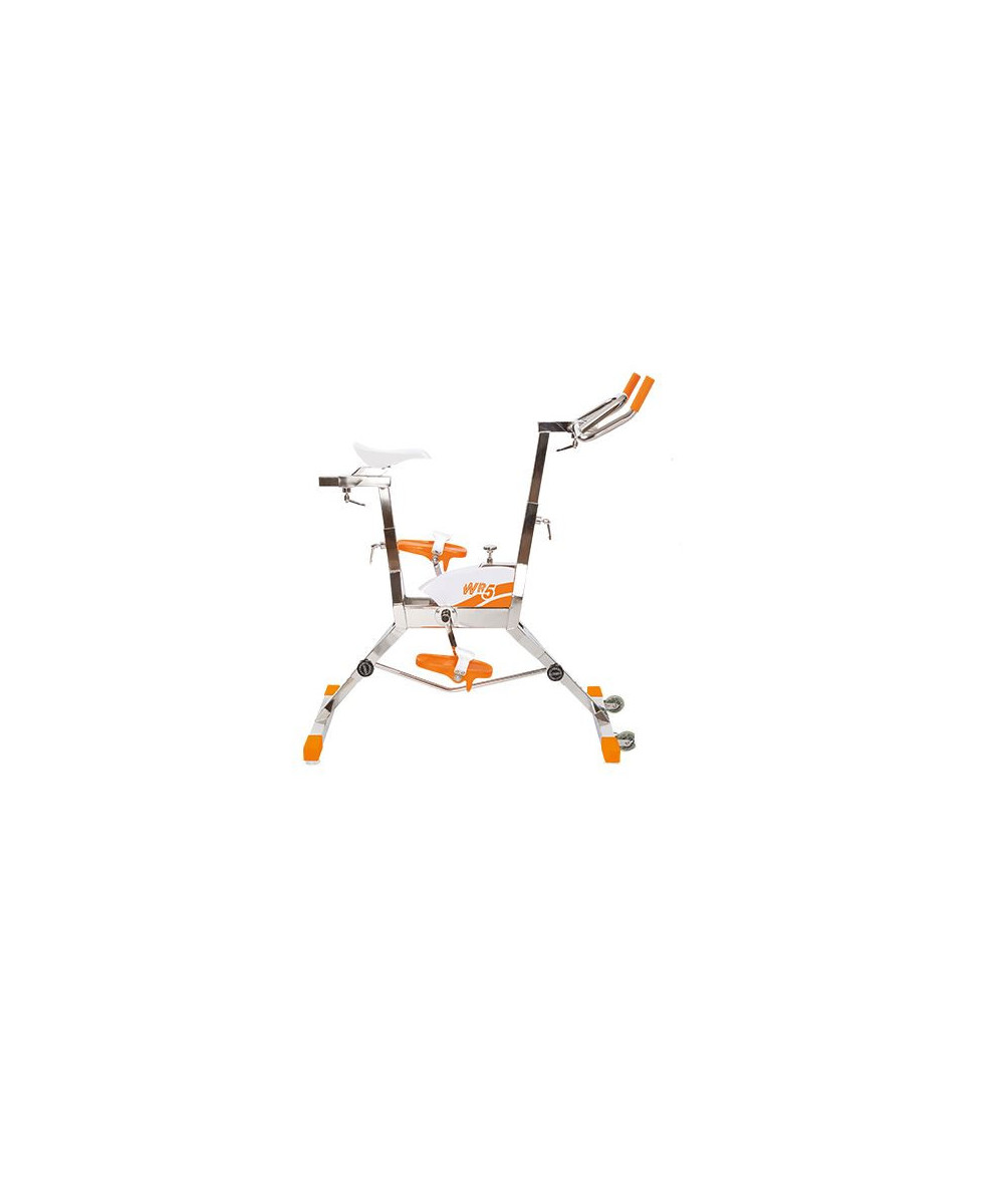L'aquabike WR5 est la version la plus sportive de sa catégorie. Sa résistance mécanique se règle à l'aide d'une molette facilement accessible. Prisé par les coachs de cours collectifs d'aqua-spinning, il possède une grande modularité de réglages pour s’adapter à tous gabarits. Le double réglage hauteur/largeur de la selle et du guidon assure une bonne assise, sans risque musculaire.