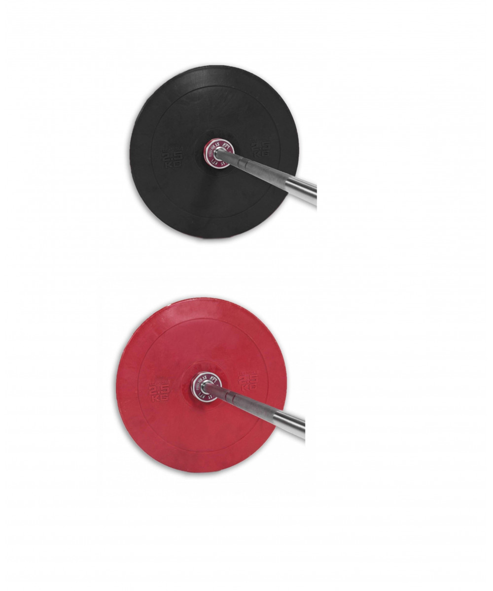Ils sont fabriqués en Caoutchouc et sont disponibles dans cette gamme en 2,5 kg. Ils ont le même diamètre (45 cm) que les disques Bumper de compétition.