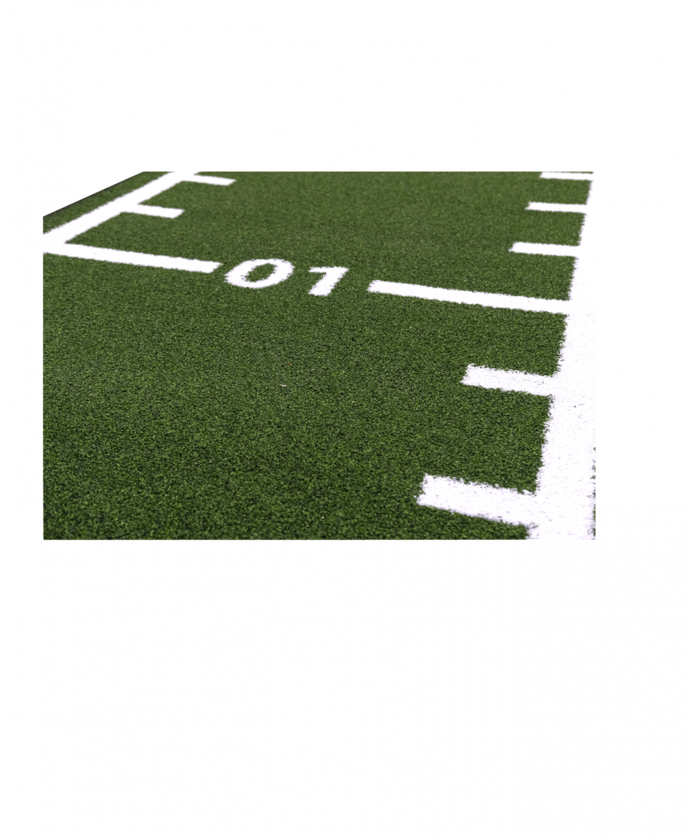 La piste de vitesse se compose de fibres synthétiques PE monobrin vertes et blanches, qui sont solidement ancrées.