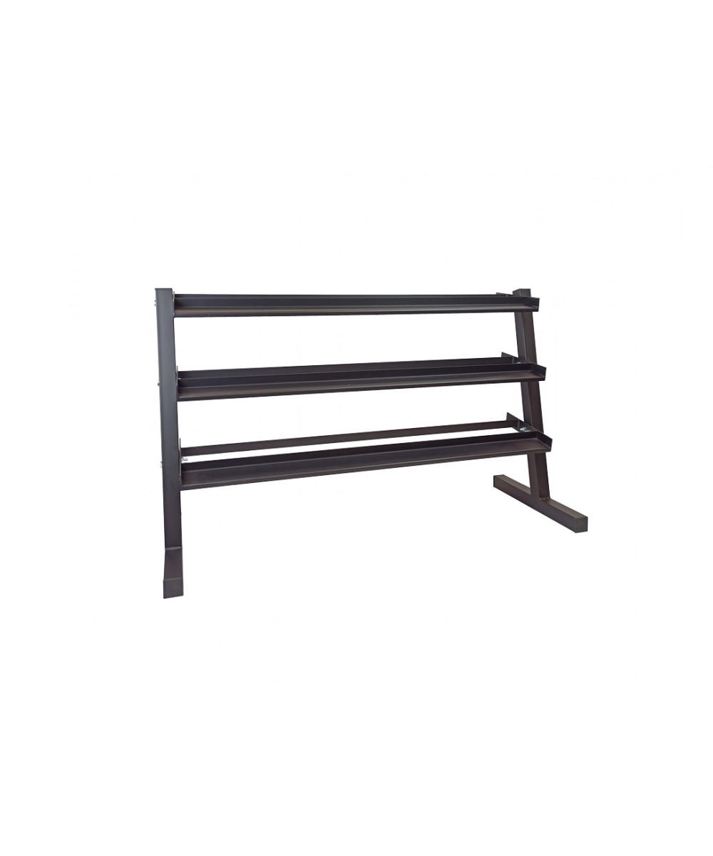 Le porte-haltères se compose de trois grandes étagères où vous pouvez ranger votre série complète d'haltères ronds ou hexagonaux.