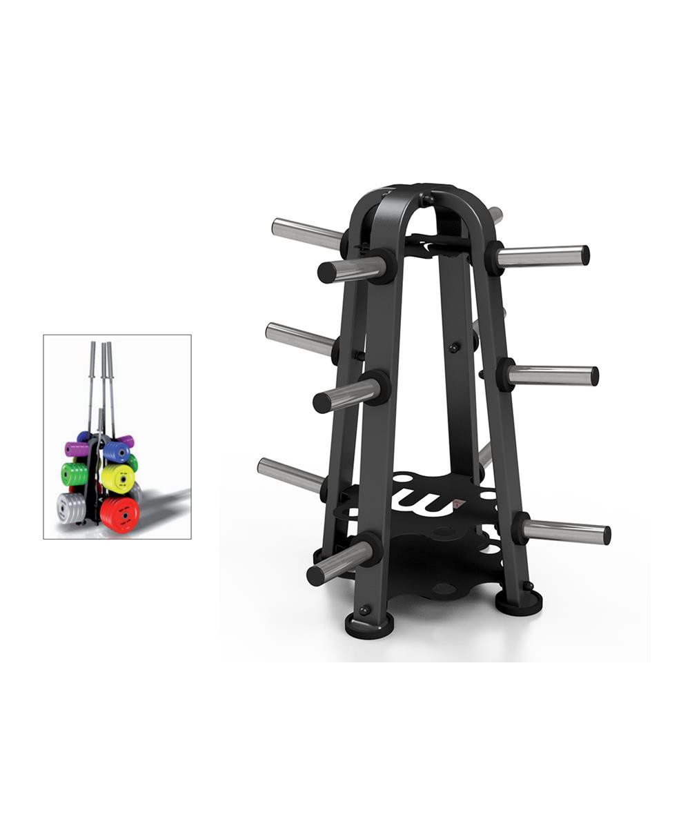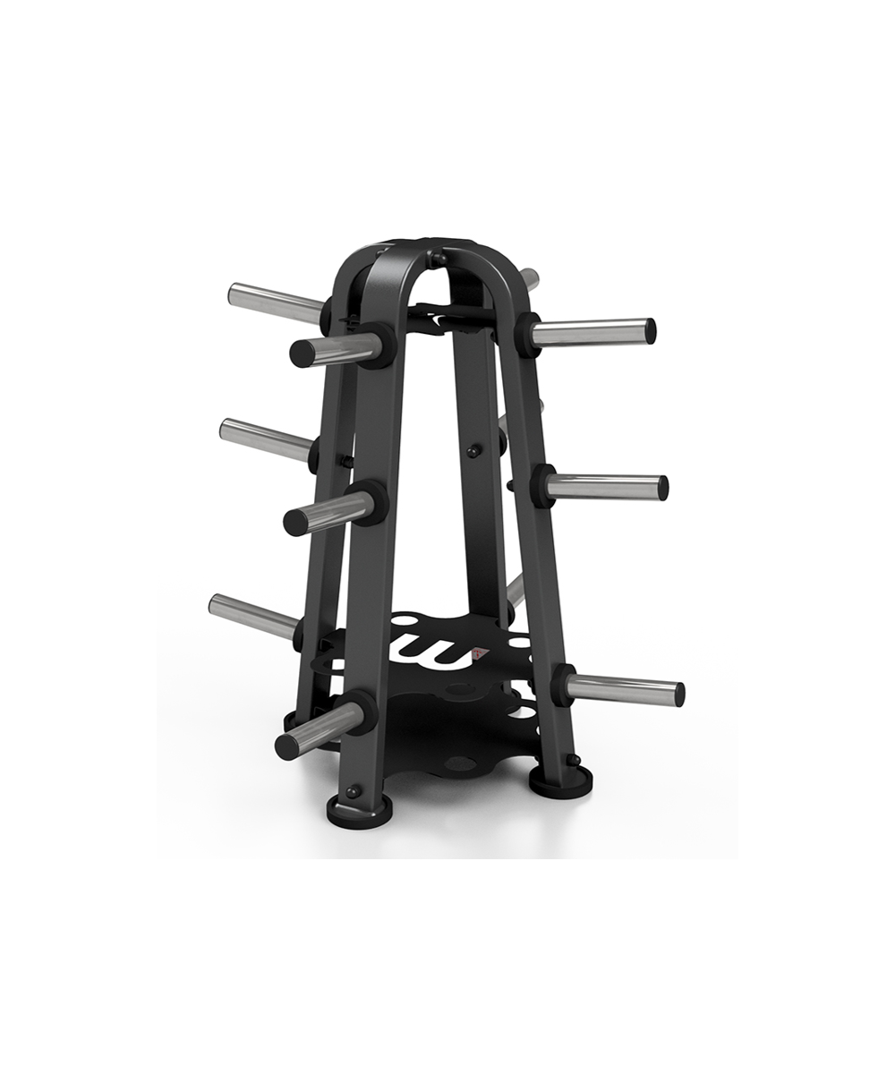 Il dispose de 12 manchons de charge, disposés de manière à pouvoir y placer des disques de poids différents. Les barres inférieures contiendront des disques de 25 kg, les barres intermédiaires 20 kg et les barres supérieures sont conçues pour des charges de 10, 5, 2,5 et 1 kg. Peut contenir jusqu'à 64 disques diamètre 50MM