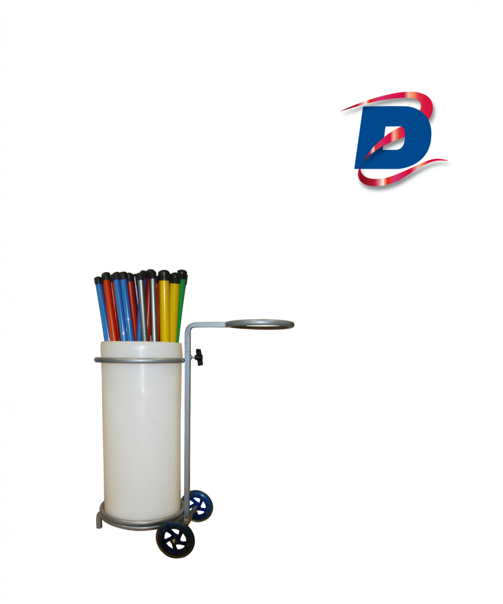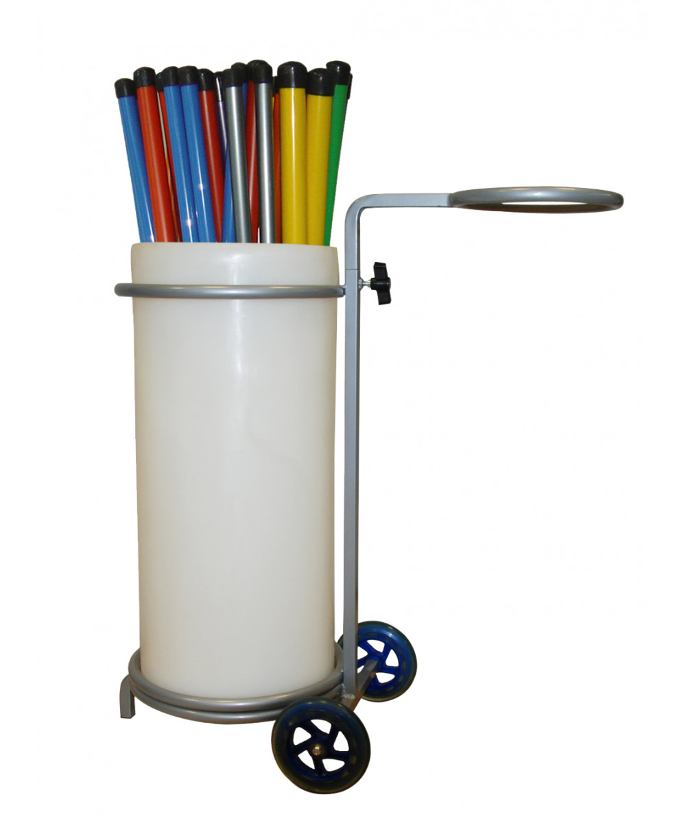 Équipé de roulettes robustes, ce support permet un transport fluide et sécurisé, même chargé. Sa structure tubulaire verticale accueille plusieurs barres de façon compacte et ordonnée, tout en garantissant leur protection et leur accessibilité.