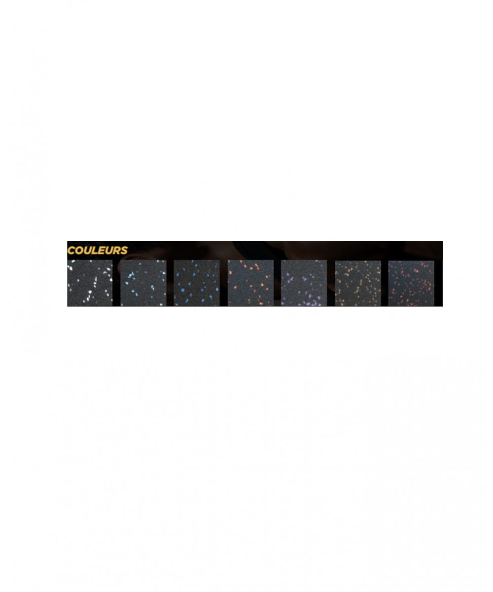 Sol en rouleau constitué de granulé de caoutchouc recyclé et pigmenté avec de l’ EPDM de couleur. La meilleure solution de sol à haute densité, polyvalente et économique avec une possibilité d’épaisseurs comprises entre 4 et 12mm.