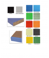 • Extérieur : La surface d'utilisation ainsi que les côtés et le retour en sous-face sont laminés par un vinyle lourd grainé paille de riz.